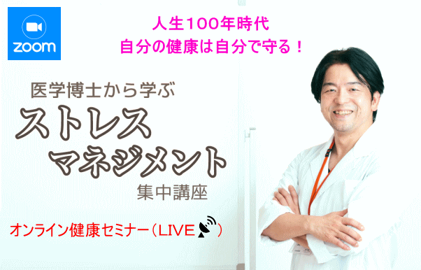 完全なコロナ禍終息までにはあと数年は要すると思われますが、アフターコロナの人生100年時代を健康で豊かに生きるために、ストレスマネージメントを中心とした実践的な知識と方法をお伝えするオンライン健康セミナーとしてリリースいたしました(講座の詳細は